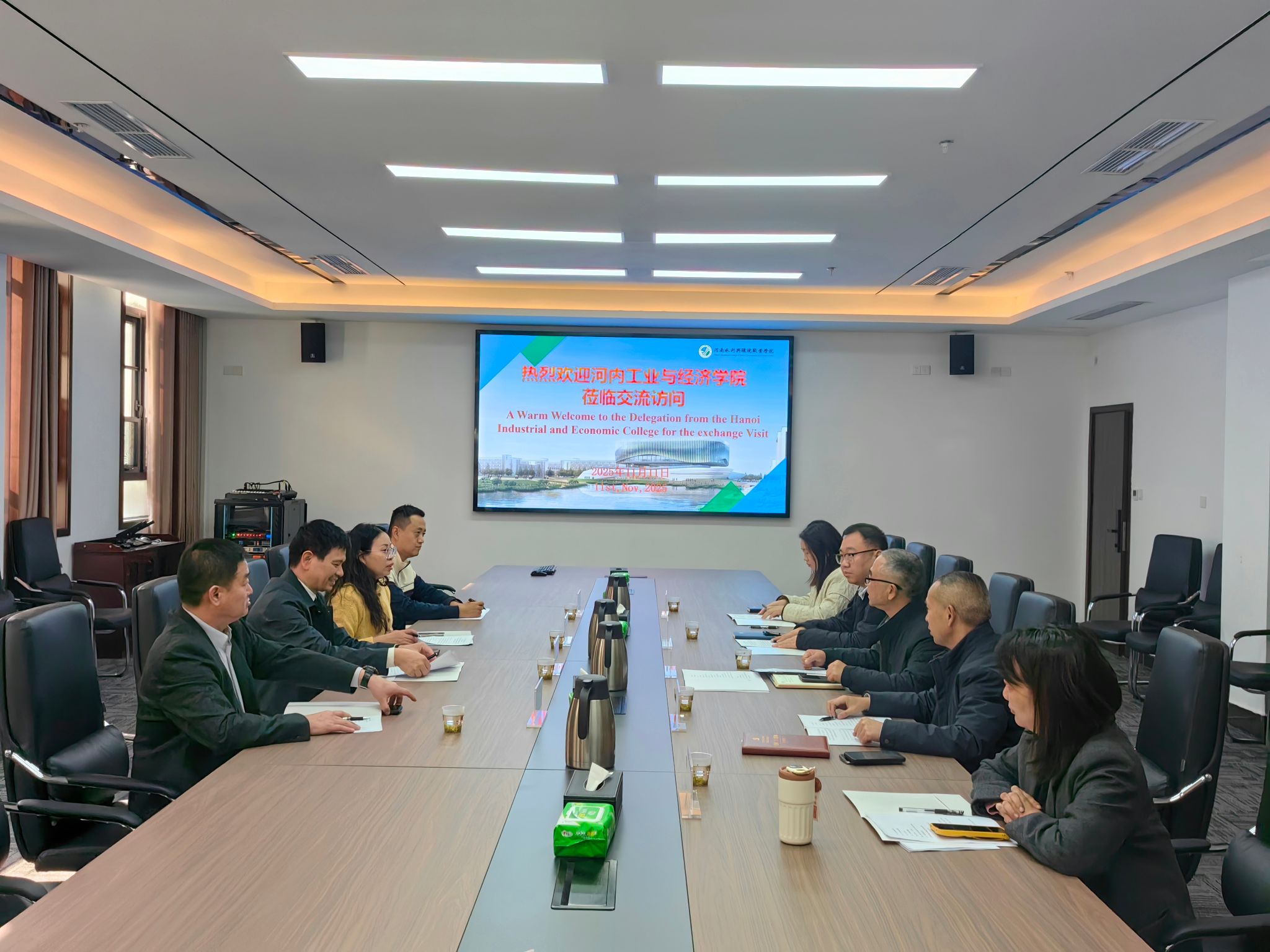 11月11日下午,越南河内工业与经济学院院长桐中政率代表团一行4人莅临我校访问交流。双方围绕职业教育国际化发展、"职教出海"合作路径等核心议题深入洽谈,共商中越技能人才培养协作新蓝图。会议由副校长包永刚主持,国际交流中心及相关二级学院负责人参加座谈。