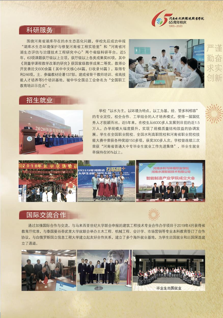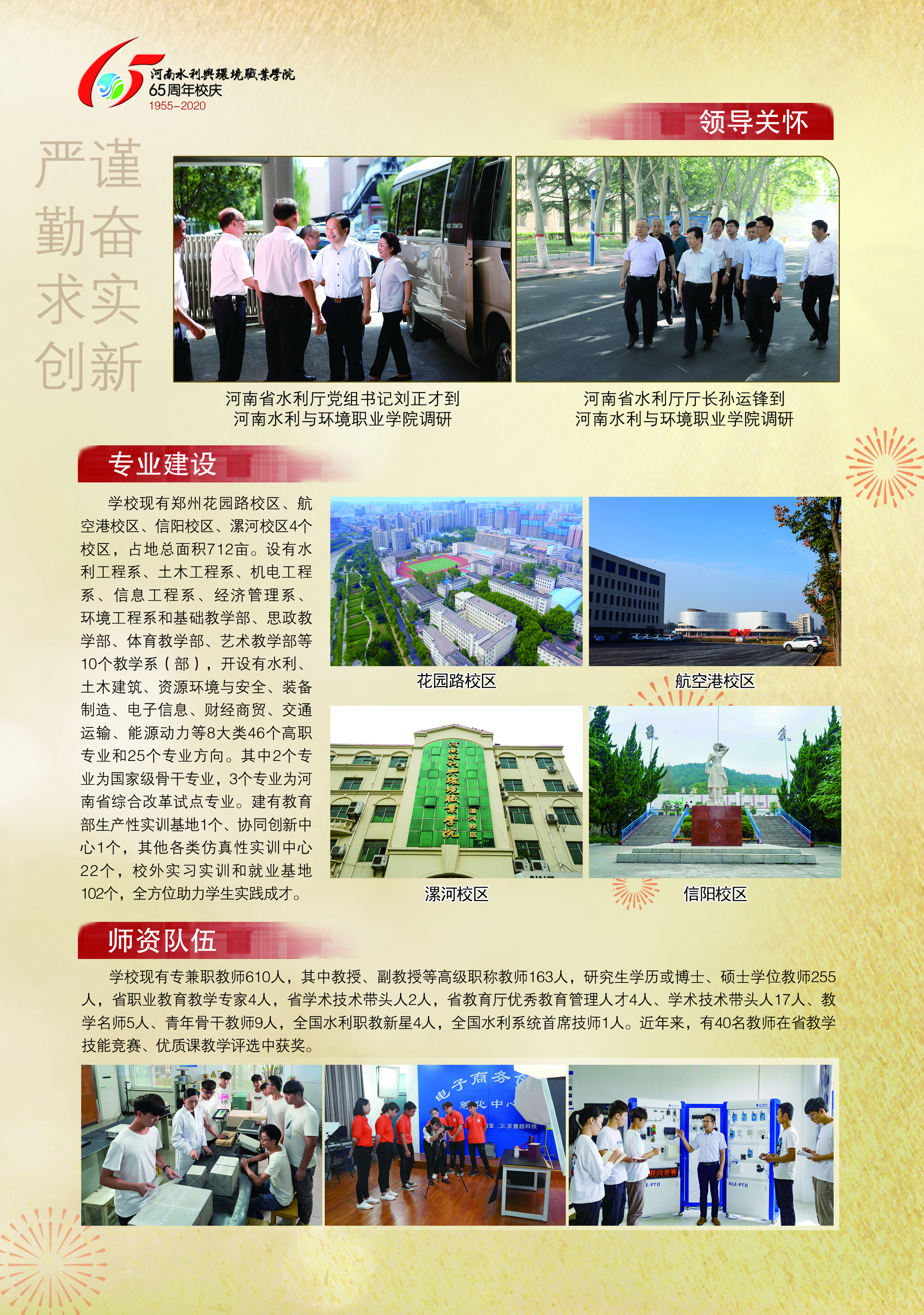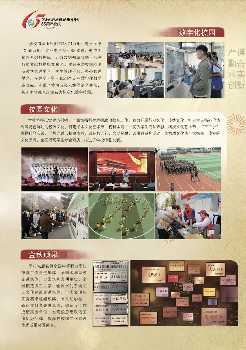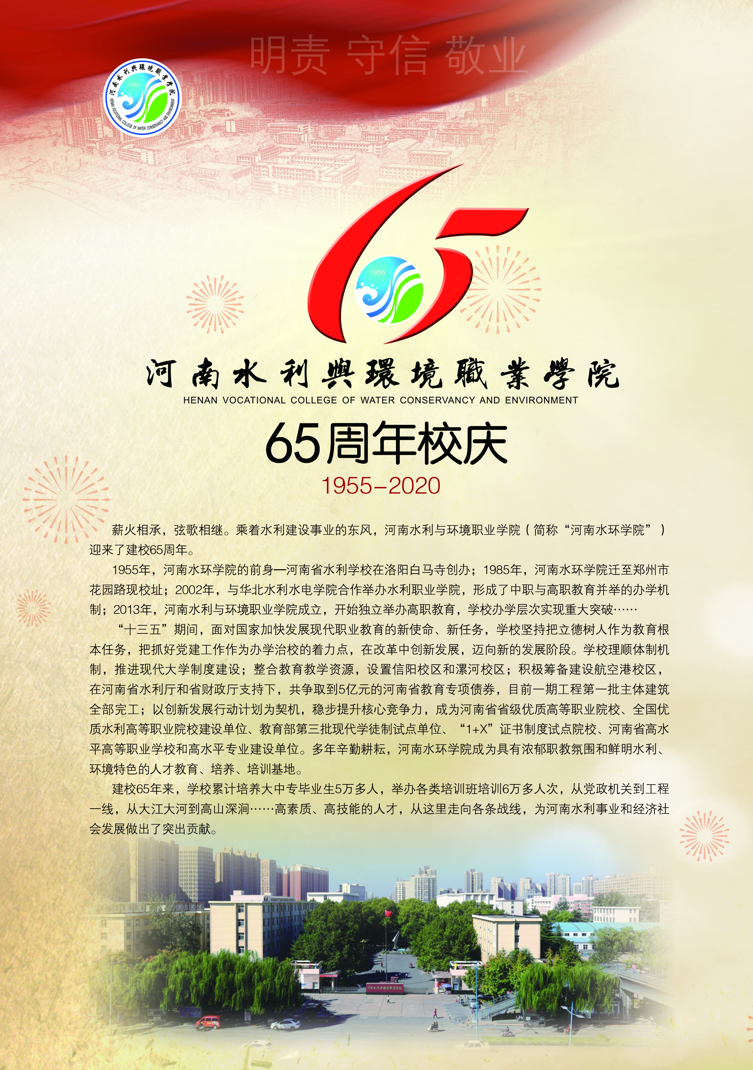 在我校建校65周年之际,《河南水利与南水北调》杂志2020年第10期以“河南水利与环境职业学院65周年校庆”为题,隆重推出校庆纪念专版。