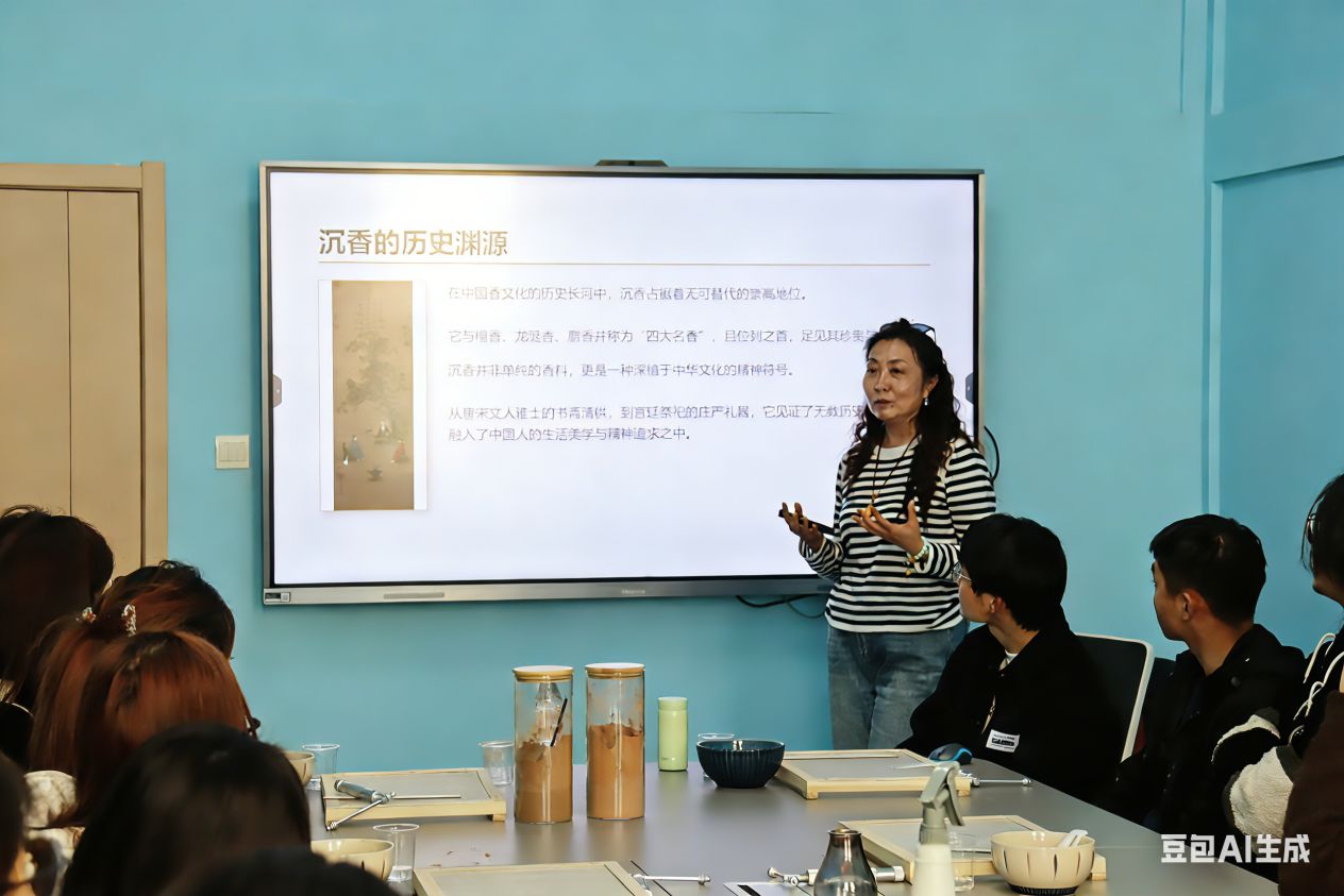 活动伊始,李欣玥老师以沉香为核心展开专题讲解,为同学们揭开这一 “众香之王” 的神秘面纱。老师结合史料记载与现代研究成果,细致讲解沉香的历史溯源、自然结香机制,深入阐释其在中华香文化体系与中医药学中的双重价值,更着重介绍了沉香香气在调节情绪、缓解焦虑方面的天然疗愈作用,让同学们在了解知识的同时,深刻体会到沉香“历经淬炼,方得香体”的人生哲理。