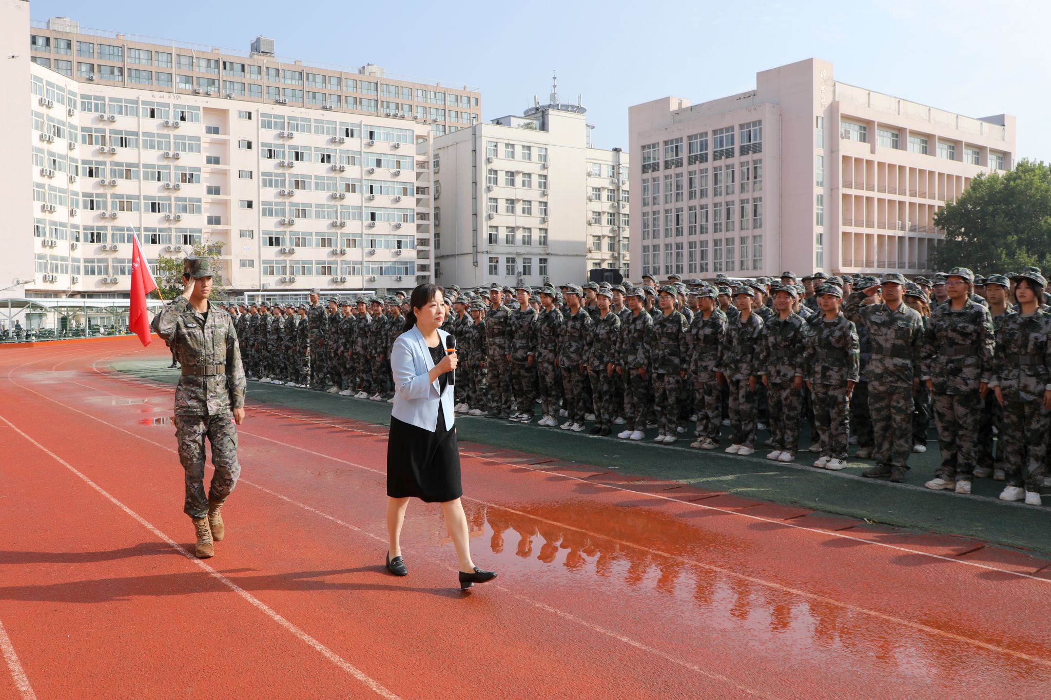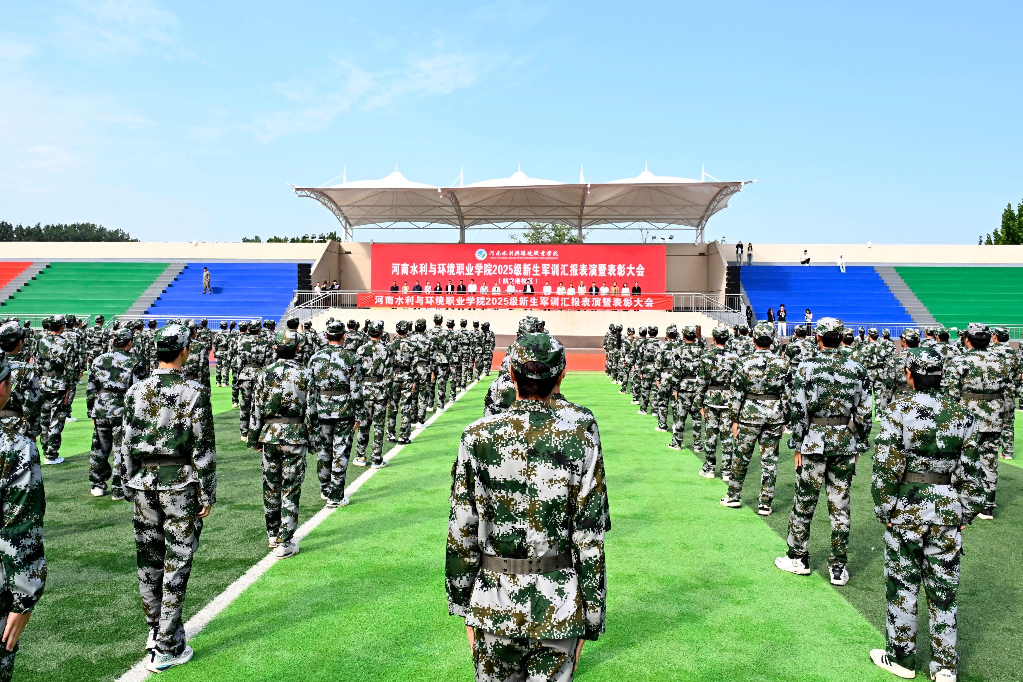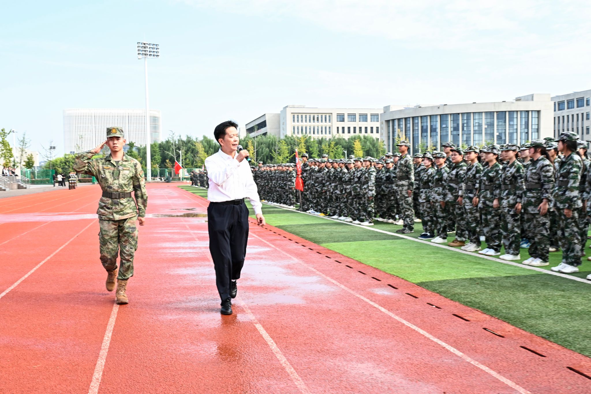 校党委书记李广慧为新生深情寄语,勉励大家将军训淬炼的“铁一般信仰”,转化为投身黄河流域生态保护、智慧水利建设的实践力量,以站军姿的坚韧立鸿鹄志,以踢正步的标准练专业功。