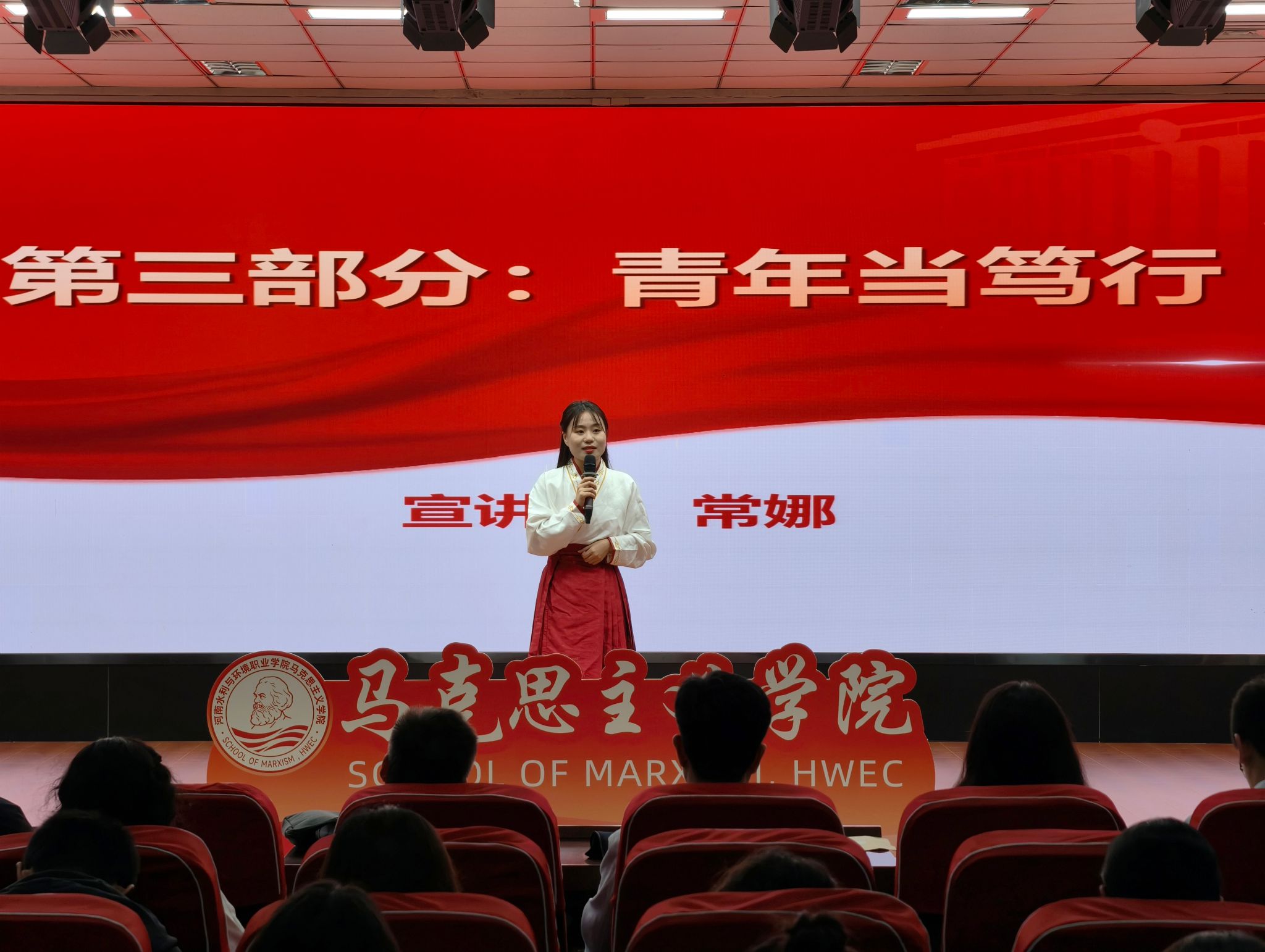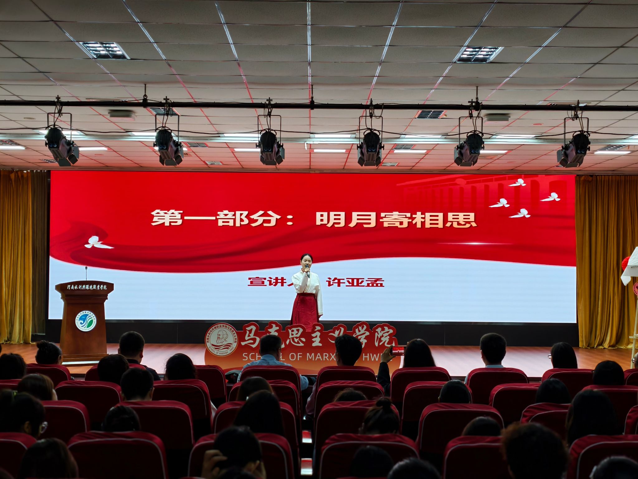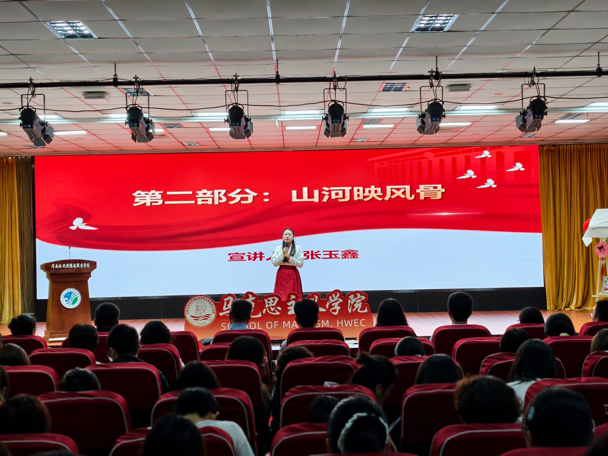 王玉振在致辞中送上双节祝福,提及学校即将迎来建校70周年办学成果展、第十七届全国水利职业院校技能大赛两大盛事,他寄语教师坚守育人初心,鼓励学子在活动中感悟家国深情,将个人理想融入时代洪流。随后,校党委书记李广慧宣布活动启动,五大系列实践环节正式拉开帷幕。