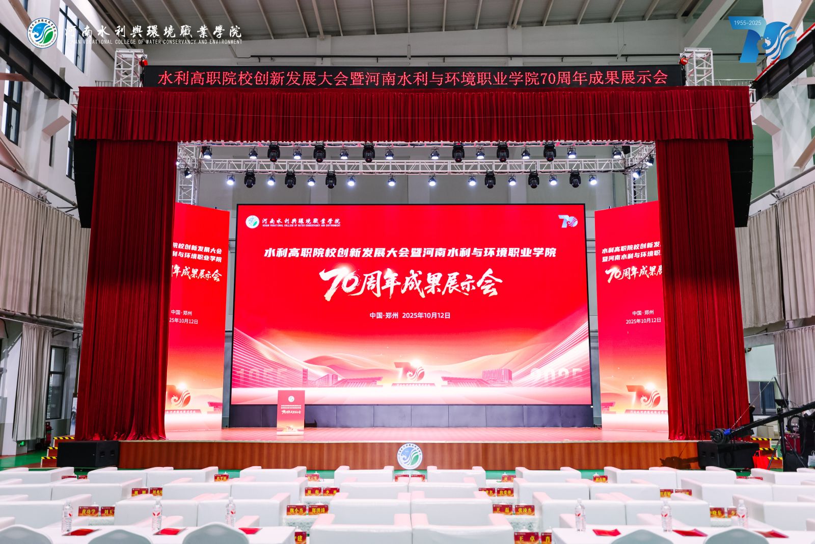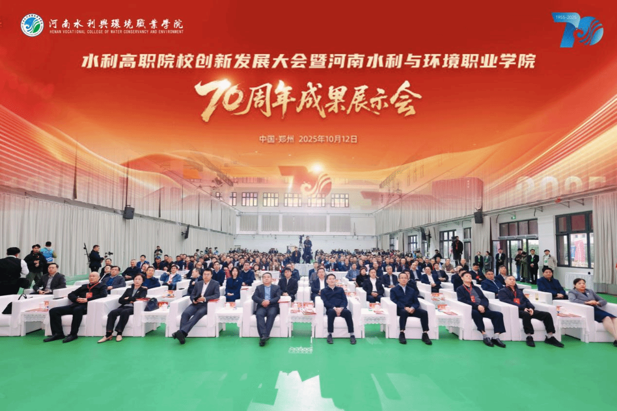 七秩芳华,水利千秋。10月12日,学校校园内高朋满座、胜友如云,水利高职院校创新发展大会暨办学70周年成果展示会在航空港校区隆重举行。河南省教育厅党组成员、省委教育工委专职副书记刘林亚,河南省水利厅党组成员、副厅长、一级巡视员刘玉柏,河南省水利厅副厅长祝云宪等各级领导、兄弟院校代表、行业企业嘉宾、各界校友及在校师生齐聚一堂,共庆学校七十华诞,共谋水利职业教育创新发展大计。