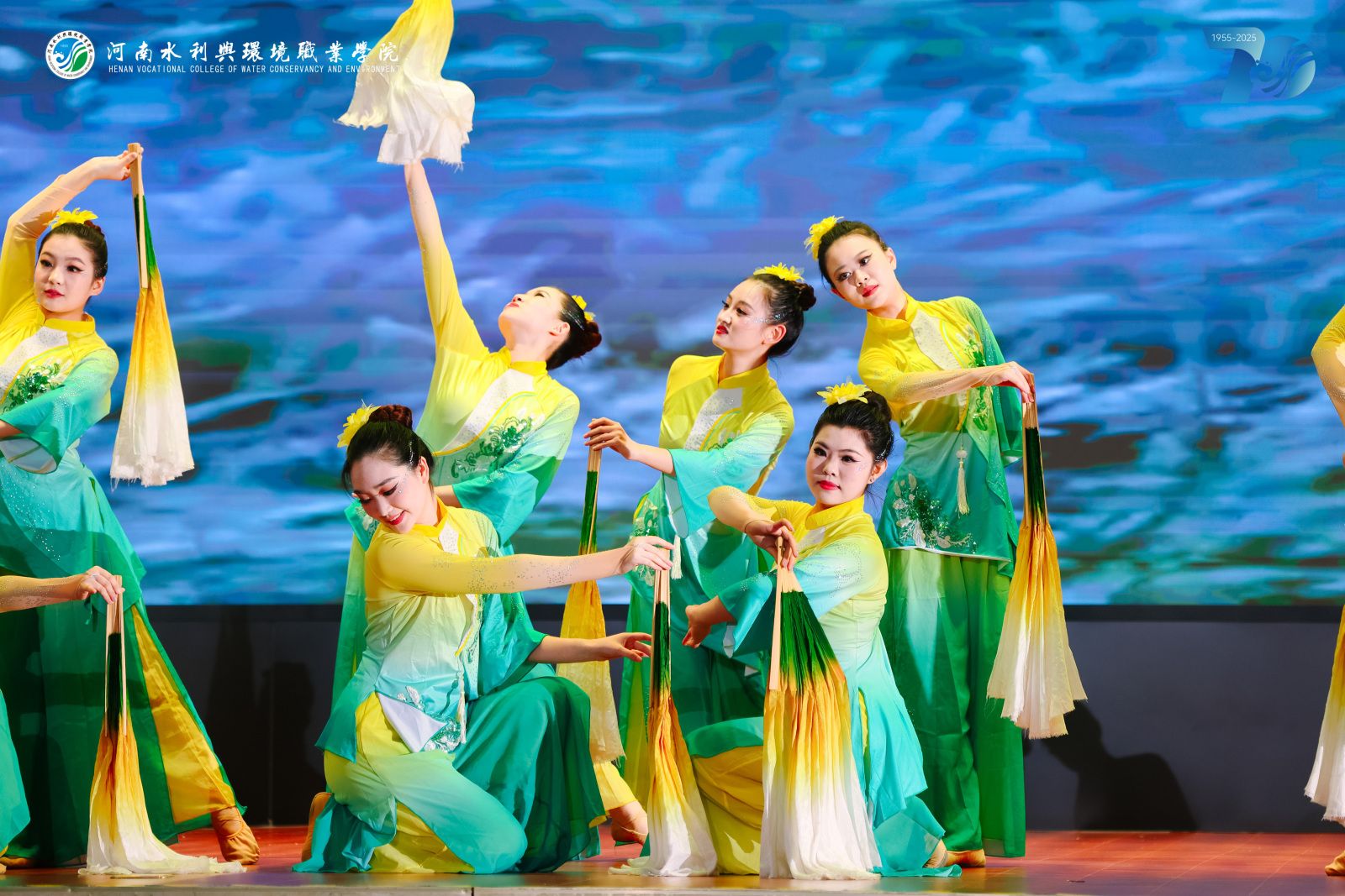 开幕式后,由大学生艺术团和来自各二级学院的学生带来的“光辉七十载 共筑水利梦”汇报演出正式开始。演出现场气氛热烈,节目内容精彩纷呈。舞台剧《时光的印记》以细腻的叙事手法,生动再现了从1955年白马寺初创到新时代跨越发展的峥嵘岁月,将几代水环人艰苦奋斗的场景一幕幕重现在观众眼前,令人动容。随后的歌曲串烧《岁月如歌》则通过不同时代的经典旋律,串联起七十年的光阴故事,引发了全场不同年龄段校友的深切共鸣。极具专业特色的情景剧《运河风华》,将古代水利智慧与当代治水精神巧妙融合,展现了水利人一脉相承的使命担当。大型舞蹈《万象更新 云程发轫》,则以恢宏的场面和充满力量的舞姿,寓意着学校在新起点上蓄势待发、前程万里的壮阔图景,将现场气氛推向高潮。