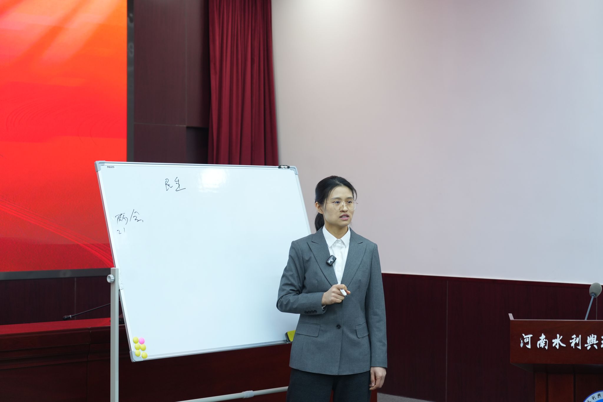 为持续深化思想政治理论课改革创新,锻造高素质专业化思政课教师队伍,全面提升思政课教学质量与育人实效,1月17日,我校马克思主义学院在花园路图书馆报告厅举办2026年度思想政治理论课“大练兵”活动暨教师技能竞赛现场决赛。竞赛特邀河南工业大学马克思主义学院院长李海涛、郑州航空工业管理学院马克思主义学院副院长侯丽羽、河南农业大学马克思主义学院教师刘宁静担任专家评委,并创新设置同行评委和学生评委共同参与评审。