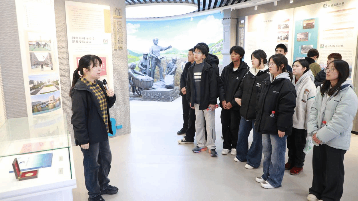 在水文化馆和校史馆,党委宣传统战部讲解老师带领同学们边走边看,系统了解国家水利事业的发展脉络和学校办学历史。