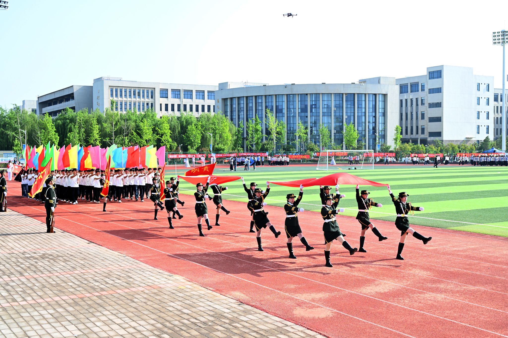 伴随激昂的《运动员进行曲》,全校12个方阵代表队依次有序入场。国旗护卫队步伐铿锵、气势如虹,护送五星红旗庄严入场;雄壮国歌声中,五星红旗缓缓升起,全体师生肃立行注目礼,尽显昂扬斗志。