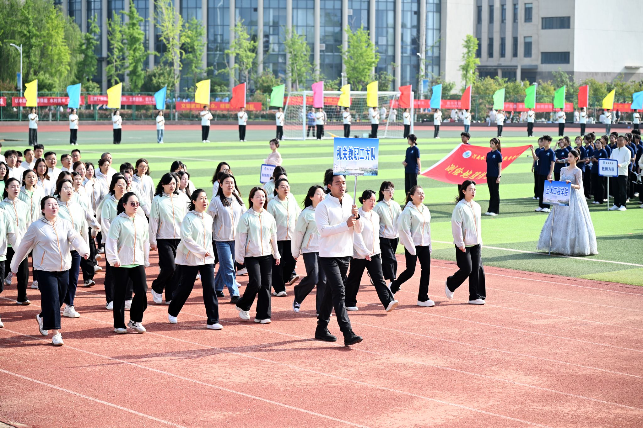 魏义军强调,本次运动会是对学校体育工作、师生体育素质与精神风貌的集中检阅,更是对师生竞技水平、综合素质、团队意识与拼搏精神的全面考验。他寄语全体运动员:以饱满激情、昂扬斗志赛出风格、赛出水平、赛出友谊;全体裁判员坚守原则、秉公执裁,确保赛事公平公正、平稳有序;全体工作人员与志愿者热情服务、精准保障,为运动员创造良好比赛环境;全体同学文明观赛、热情助威,共同营造积极向上、团结友爱的运动氛围。最后,他号召全体师生以本次运动会为契机,点燃运动热情,让健康生活理念深入人心,让体育精神成为推动学习、工作与生活向前的不竭动力。