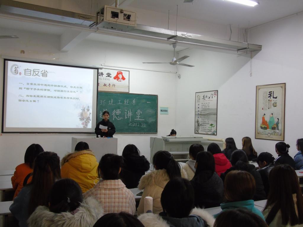 为提升师生的家国意识,传承爱国爱家的传统美德。环境工程系在综合楼408教室以“爱国爱家”为题举办道德讲堂活动。系全体学管老师、学团干部及2020级学生代表共计110人参加此次活动。