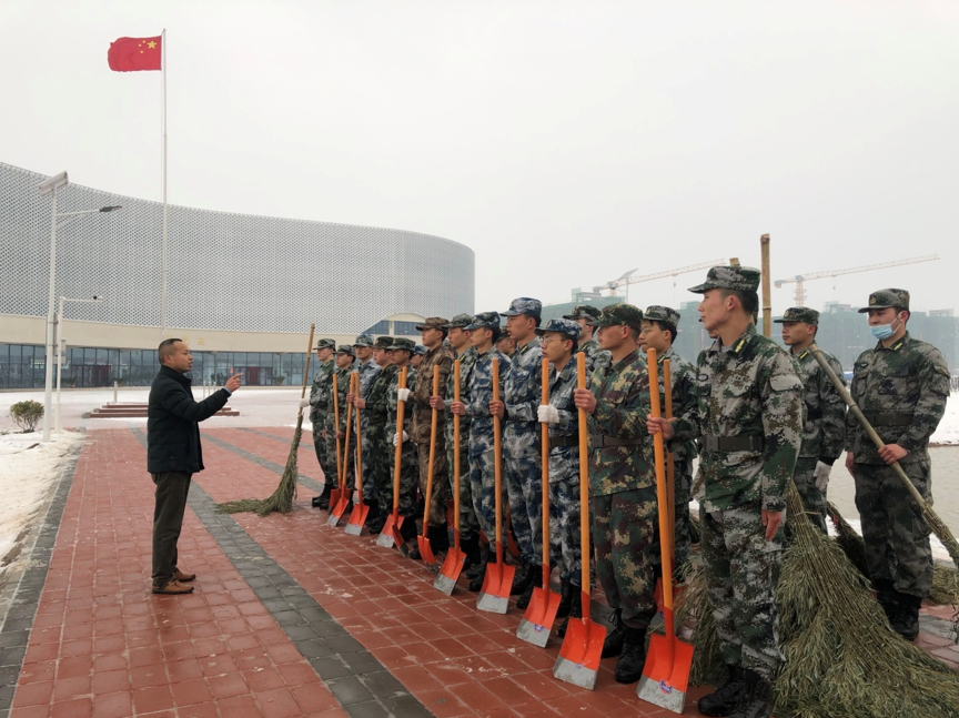 大家不畏严寒,挥动手中的铁锨和扫帚,经过近1个小时的奋战,把学生军训道路上的积雪清理干净,确保了广大师生的安全通行和正常军训活动的开展。此次铲雪活动,驻训教官展现了良好的组织纪律性和奉献精神,为学生们树立了良好的榜样。