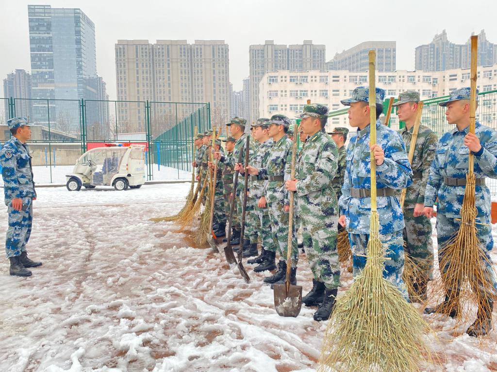 活动中,教官带头冲锋,学生积极响应,齐心协力,不畏严寒,经过奋战,将校园内的道路积雪清扫干净。通过此次扫雪劳动,同学们纷纷表示切实体会到了劳动的光荣价值,也收获了自己动手清扫校园的成就感。