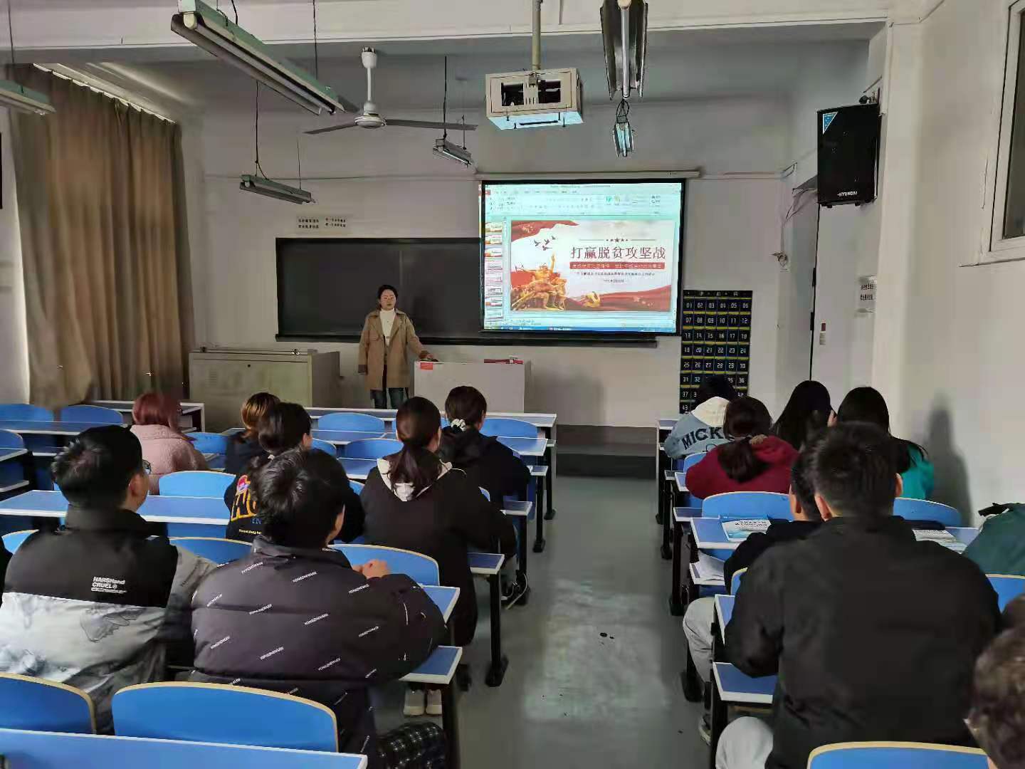 党委书记王立正围绕脱贫攻坚主题,在航空港校区德礼讲堂为水利工程系学生上了思政第一课。课上,他详细讲述了脱贫攻坚的提出背景、发展历程、取得成就、重要经验及其重大意义,要求与会学生要弘扬民族精神,积极向楷模学习,在为人民服务中茁壮成长,在艰苦奋斗中砥砺意志品质,在实践中增长工作本领,做敢于担当的时代好青年。
