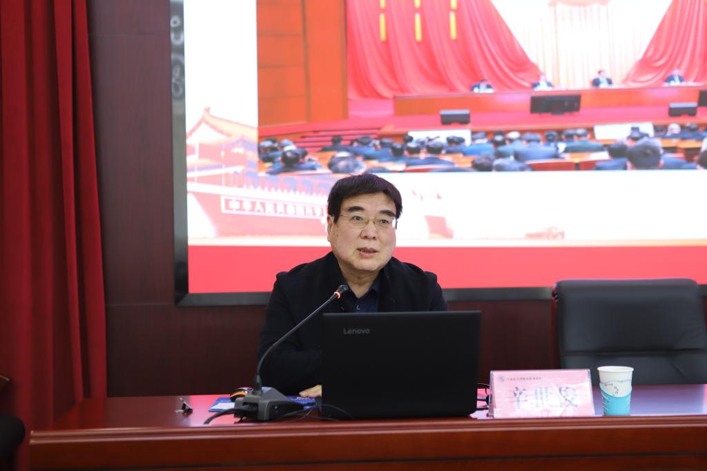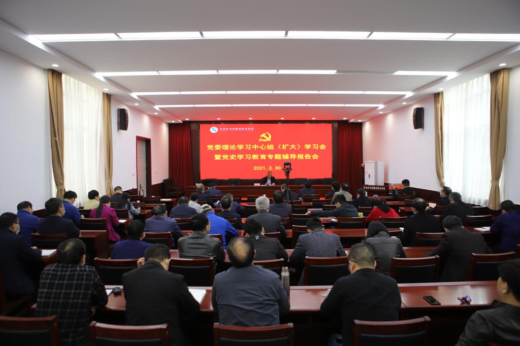 3月30日,我校在图书馆报告厅举行校党委理论学习中心组(扩大)学习会暨党史学习教育专题辅导报告会。郑州大学辛世俊教授应邀作题为“奋斗百年路 启航新征程”的专题辅导报告。校党委理论学习中心组全体成员,中层以上干部,全体教职工和学生代表参加辅导报告会。会议由校党委书记王立正主持。花园路校区、航空港校区、信阳校区共7个分会场通过在线视频参加了报告会。