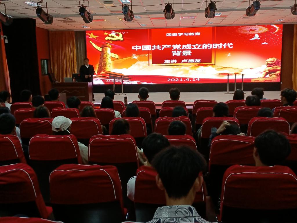 4月14日,水利工程系党总支以“中国共产党成立的时代背景”为题对2020级入党积极分子进行党课培训,系党总支书记卢德友主讲,辅导员参加。