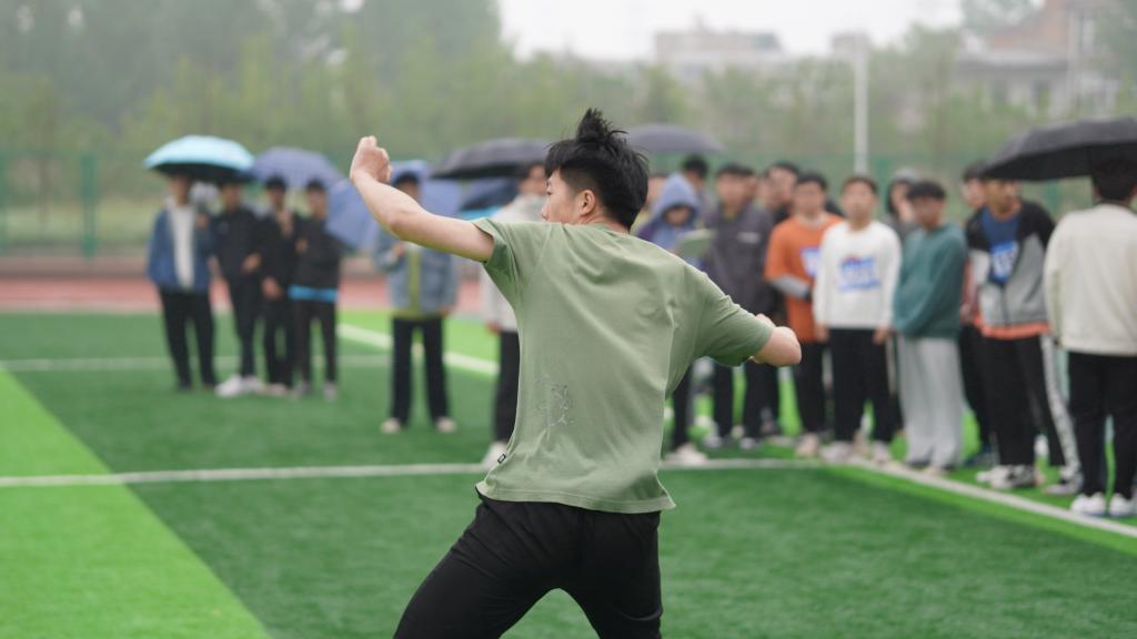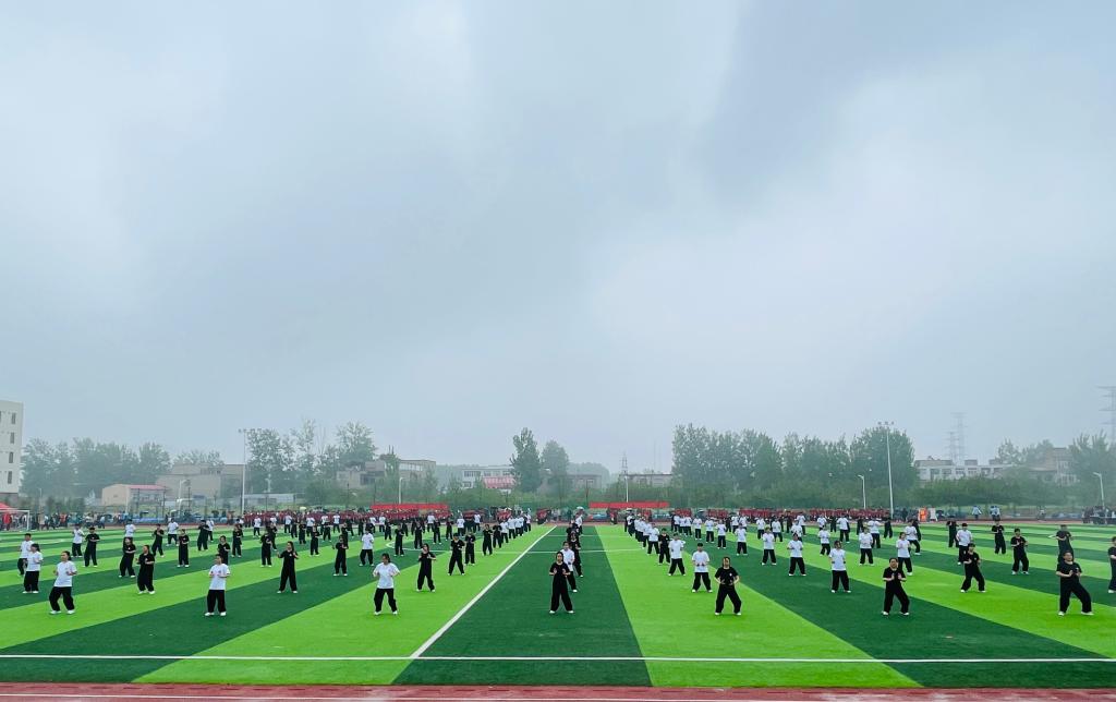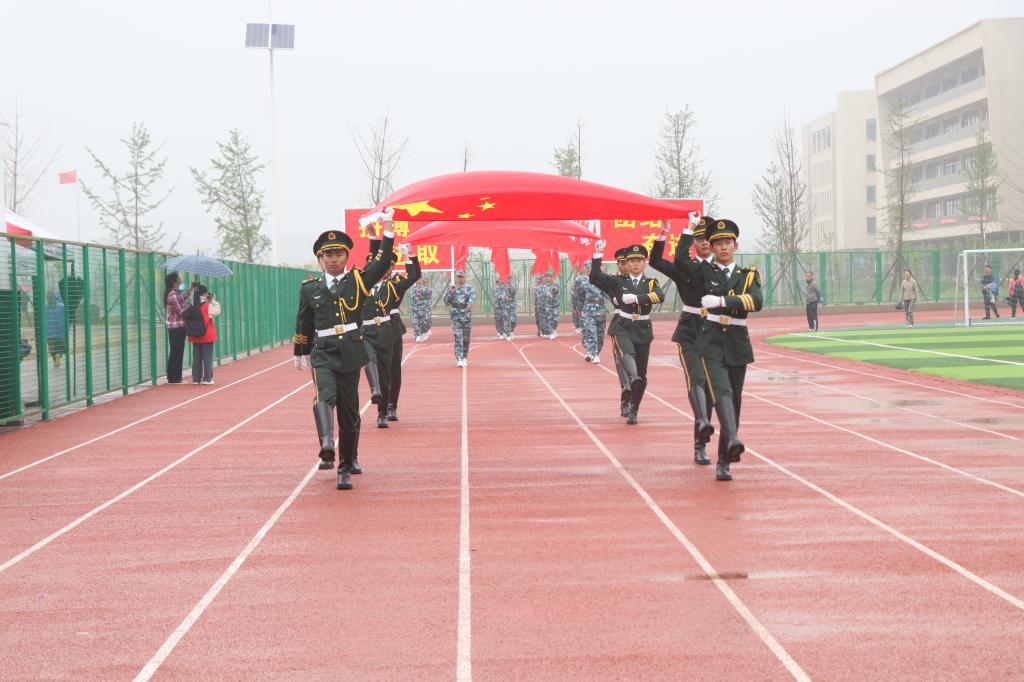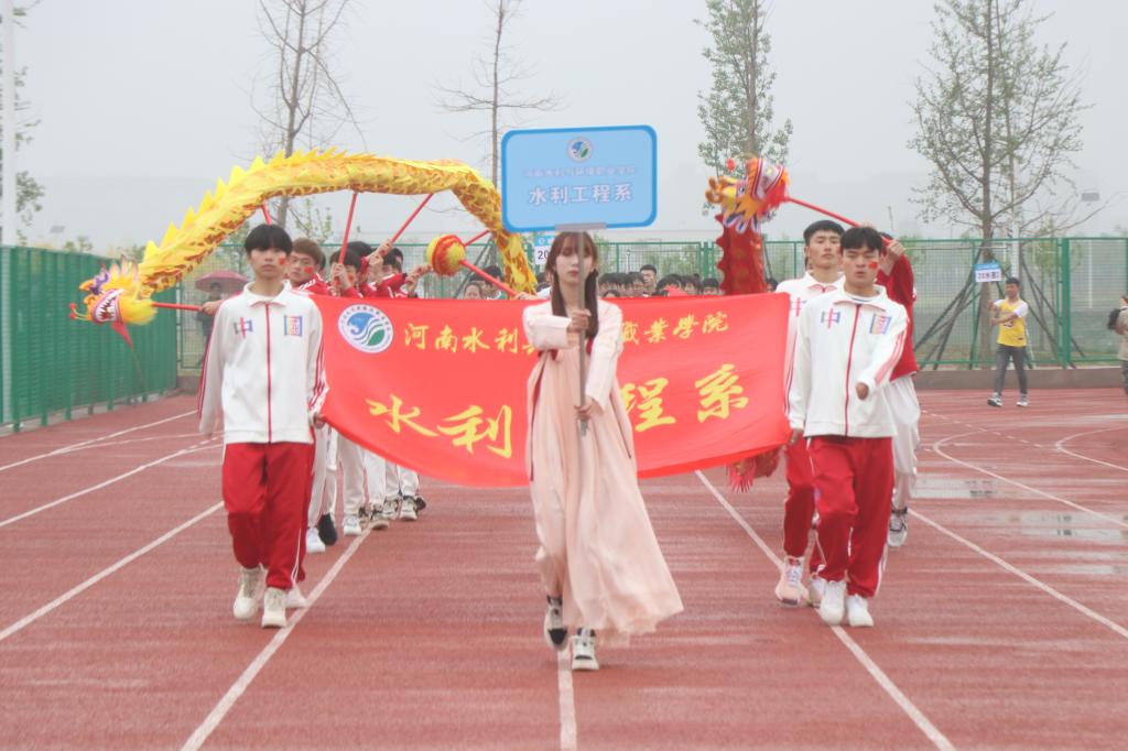 郑志宏致开幕词;运动员代表和裁判员代表分别进行宣誓;王立正宣布运动会开幕。开幕式上,踏着昂扬的运动员进行曲,国旗护卫队、学生方队依次从主席台前走过,整齐的队列、有力的步伐展示出我校青年大学生饱满的精神面貌。数百名学生进行了《太极拳》和《团体操》表演,亮丽整齐的着装、规范一致的动作,洋溢着朝气蓬勃的青春气息,赢得观众的阵阵掌声和喝彩,成为开幕式上的亮点。