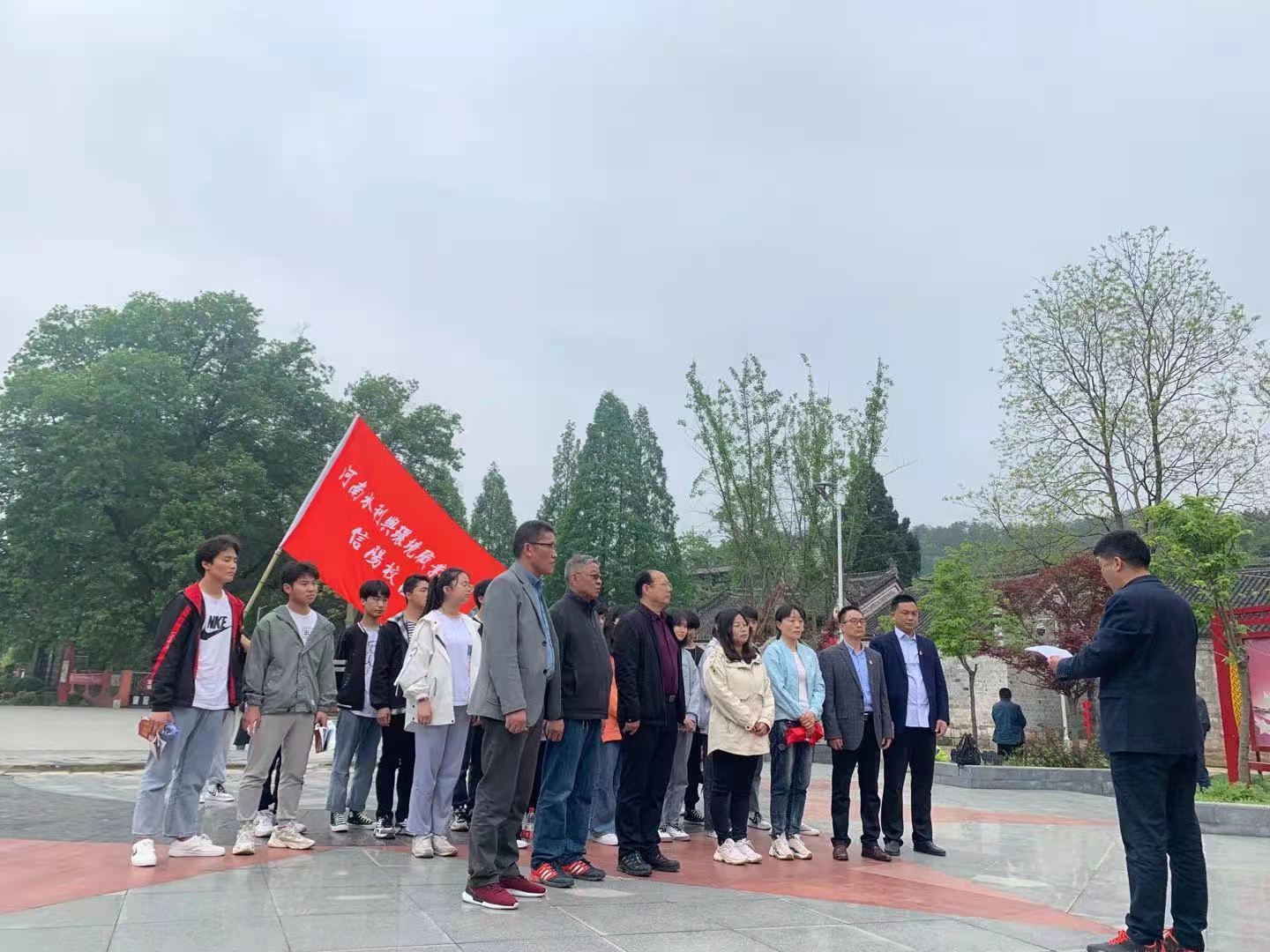 4月25日,信阳校区教工党支部全体党员和学生干部到罗山县何家冲红色教育基地,开展“ 学党史、强信念、育新人”党史学习教育。