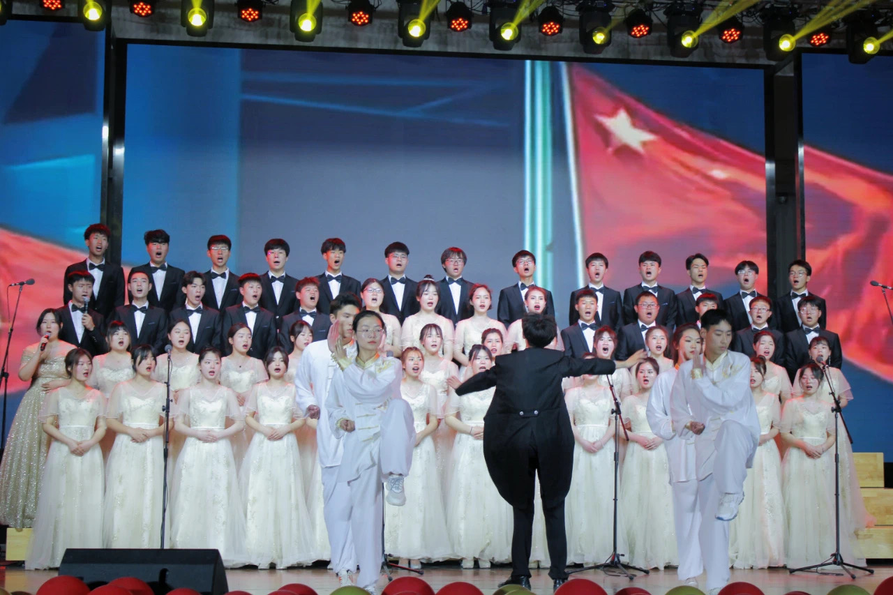 漫漫征途忆峥嵘岁月,声声嘹亮颂百年初心。5月18日、20日晚,由校团委和艺术教学部联合主办的“永远跟党走,奋进新征程”庆祝中国共产党建党100周年合唱比赛分别在花园路校区、航空港校区隆重举行,来自各系的20支参赛队伍通过一首首激动人心的红歌唱出了对党的忠诚和热爱,表达了对中国共产党成立100周年的深情祝福。全体校领导、有关部门负责人和在校师生参加。本次比赛同时采用网络直播的方式进行,共有近5万名观众在线观看了比赛。