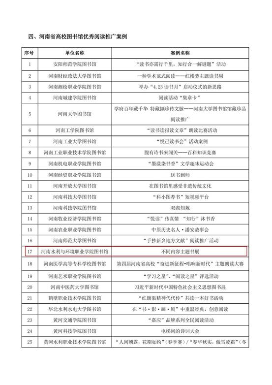 12月15日,由河南省高等学校图书情报工作委员会主办,郑州大学图书馆、河南省高等学校图书情报工作委员会阅读推广专业委员会承办的“河南省高校图书馆阅读推广20周年总结表彰大会”在郑州大学图书馆成功举办。会上对各高校图书馆的阅读推广先进单位、优秀阅读推广人、优秀读书社团、优秀阅读推广案例进行了表彰和通报。我校图书馆荣获“河南省高校阅读推广先进单位”,我校悦读推广社被评选为“河南省高校图书馆阅读推广优秀读书社团”,我馆开展的“不同内容主题书展”被评选为“河南省高校图书馆优秀阅读推广案例”,侯婷婷老师荣获“河南省高校图书馆优秀阅读推广人”。