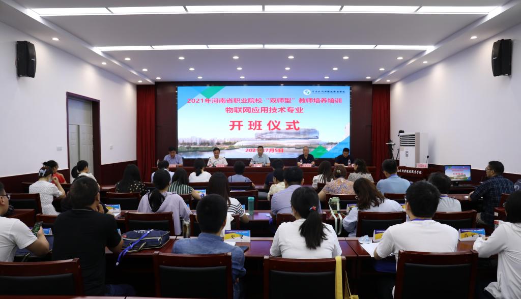 7月5日,由我校承办的河南省职业院校物联网应用技术专业“双师型”教师培养培训班顺利开班。省教育厅职业教育与成人教育处副处长张家成,北京新大陆时代教育科技有限公司华中区总监高鹏,校党委书记王立正,副校长黄功学、张凌杰,信息工程系负责人、教师代表及培训班全体学员参加开班仪式。仪式由张凌杰主持。