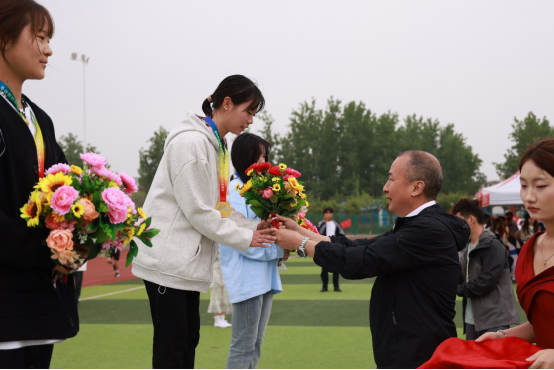 致辞中表示,在为期两天的激烈角逐中,运动员们以饱满的热情、昂扬的斗志,在赛场上敢于拼搏、勇于进取、善于合作、争创佳绩,用汗水和努力谱写了一曲曲动人的乐章,展现了新时代水环学生的风采,营造了良好的校园体育文化氛围。希望同学们继续发扬团结协作、拼搏进取的精神,以更加昂扬的斗志和饱满的热情,投入到学习和生活中去。学校将坚持加强和改进学校体育工作,不断提高学生身体素质,推动体育教学质量提升,争创工作品牌,高质量建设现代化水环学院。