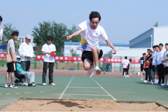 机电工程系23级程高升同学,在男子立定跳远项目中,以3米13的成绩刷新了3.05米的原纪录;