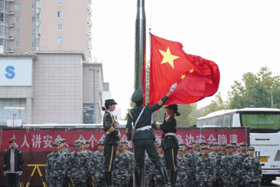 上午6点40时,升旗仪式正式开始。英姿飒爽的国旗护卫队队员们迈着整齐有力的步伐,护送五星红旗走向升旗台,他们的步伐沉稳有力,落地有声。在全体师生的注目下,升旗手振臂一挥,鲜艳的五星红旗在激昂的国歌声中冉冉升起,随风飘扬在校园上空。现场气氛庄重而热烈,师生们庄严肃立,面向国旗行注目礼,齐声高唱国歌,用歌声抒发对祖国的深深热爱和美好祝福。