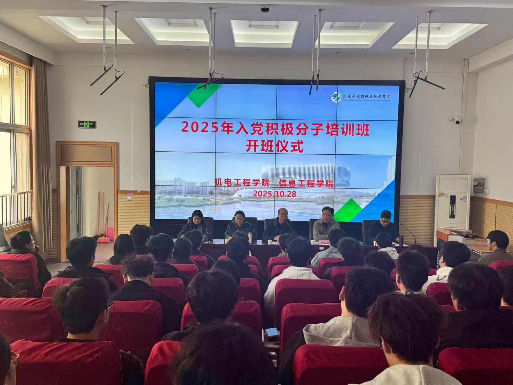 10月28日下午,信息工程学院、机电工程学院第一期联合党校开班仪式在北教三阶顺利举行。仪式由信息工程学院党总支副书记杨月霞主持,机电工程学院党总支书记张国路,信息工程学院党总支书记周颖琦,机电工程学院副院长陈素,机电工程学院专职组织员王远志出席。两院系组织发展负责人及本期党校全体学员共同参与。