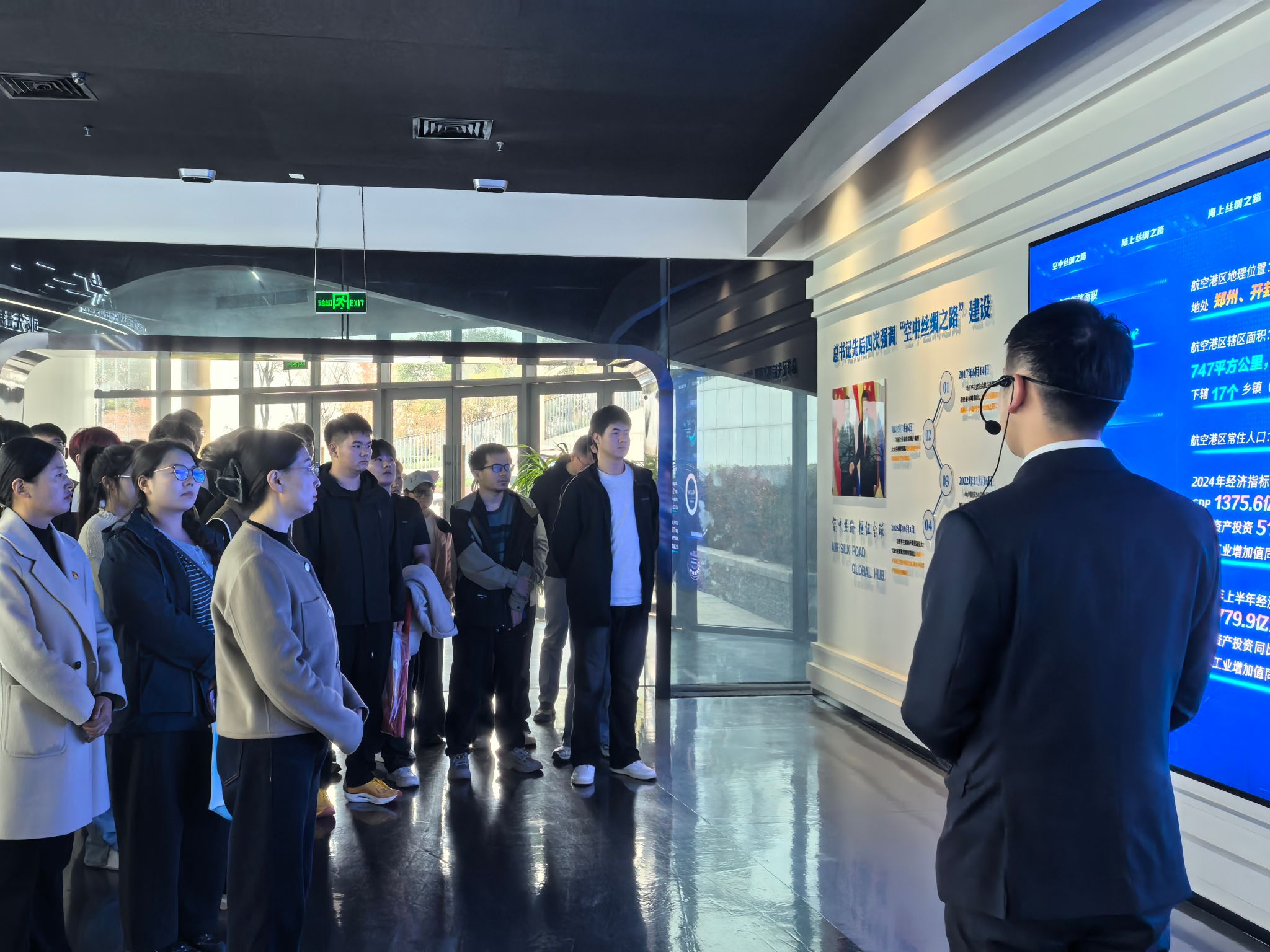10月29日,土木工程学院党总支书记李文君带领师生社会实践团队赴航空港市民中心,开展主题党日活动。师生通过实地观察、深度访谈与亲身体验,将党课理论与现实场景深度融合,沉浸式感悟基层治理创新实践成果。