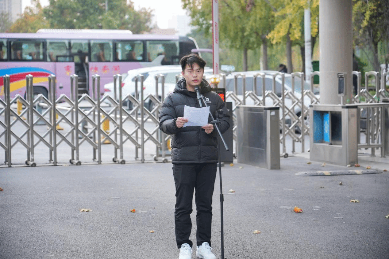 仪式上,学院党总支书记张国路做国旗下讲话,他以“点燃安全红色引擎,筑牢校园一线灯塔”为主题,强调安全是学业发展的基石,并重点围绕消防安全提出要求,一要强化安全防范意识;二要严格执行规章制度;三要发挥榜样作用。同时针对防诈骗、拒暴力、文明出行等六方面安全事项作出提醒,号召全体学生共同维护校园安全,不仅照亮自己的成才之路,也守护身边同学的平安之旅!