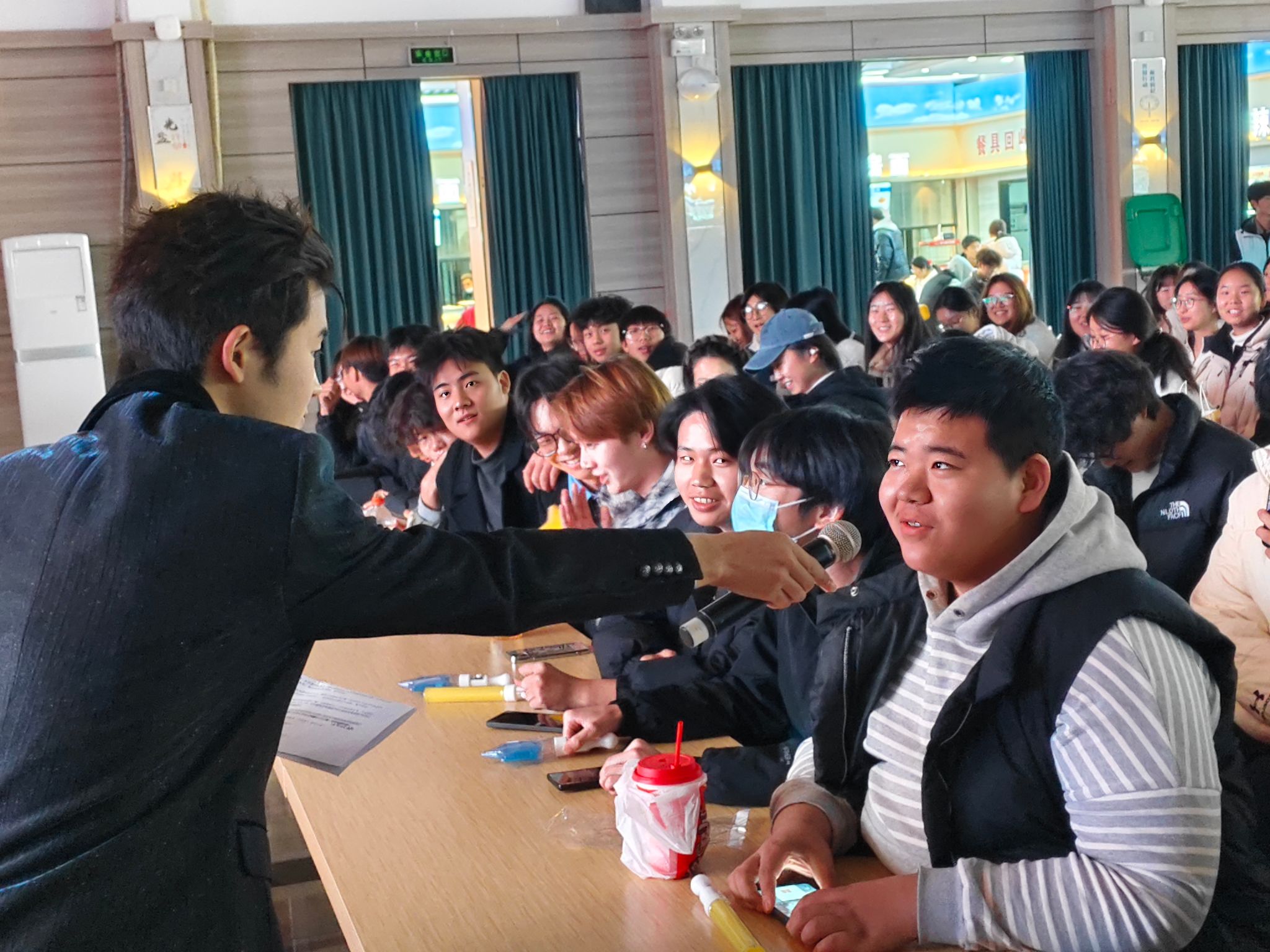 比赛间隙设置的反诈知识有奖竞答环节亮点十足,“陌生电话中奖要转手续费该怎么做”“反诈专线电话是多少”等问题,以互动答题的形式向师生普及反诈知识,强化安全防范意识,现场参与热情高涨。随后耀舞社带来的动感舞蹈《spaghetti》与“歌曲传声筒”游戏环节,交替呈现劲歌热舞与趣味互动,让现场气氛持续升温。