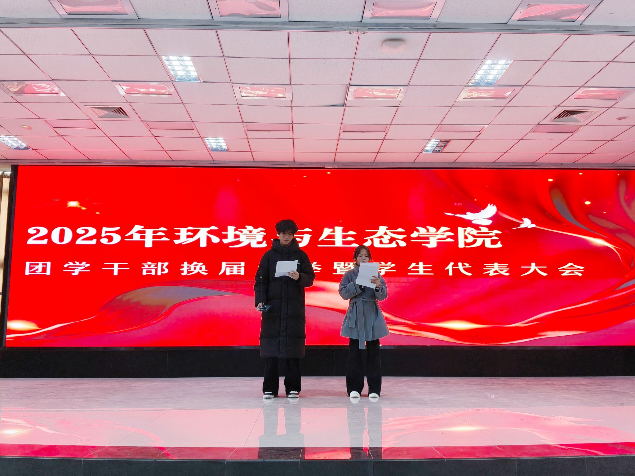 为加强团学组织建设,推进学生工作有序传承,12月9日,环境与生态学院“第五届团学干部换届选举暨学生代表大会”在德礼讲堂二楼召开。学院党总支书记邢伟明,党总支副书记何欢,学生群团办公室主任王慧娟及全体辅导员参加会议,学院120名学生代表参会,共同见证团学组织的新老交替与使命传承。