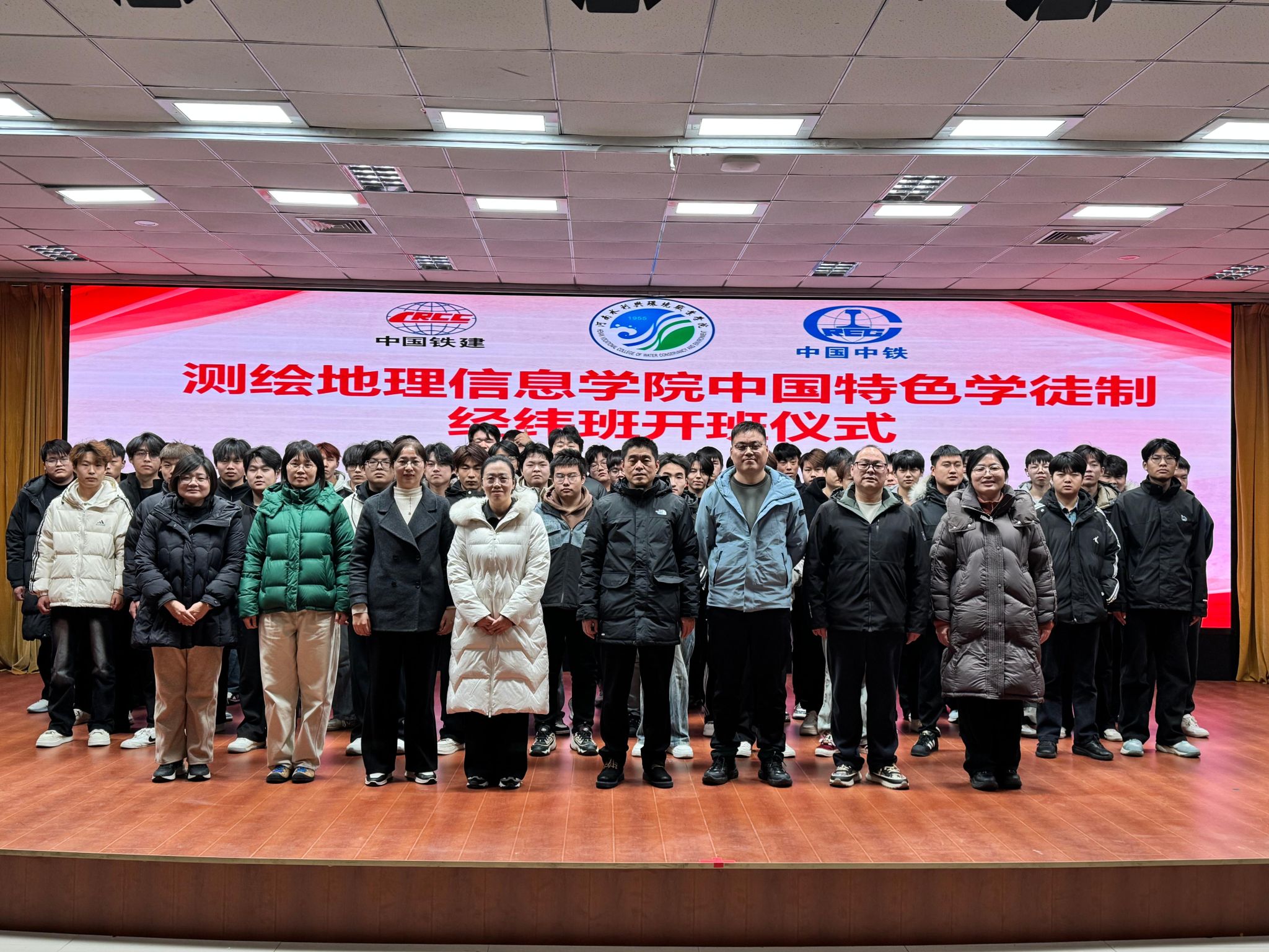 1月4日,测绘地理信息学院与安徽中铁工程技术有限公司联合举办的“中国特色学徒制班”开班仪式在航空港校区德礼讲堂顺利举行。安徽中铁工程技术有限公司北方区域负责人谨雪朝,教务处副处长冀健红,相关院系负责人、专业课教师及工程测量技术、城市轨道交通工程技术专业学生共同参会,仪式由测绘地理信息学院院长尹冬丽主持。