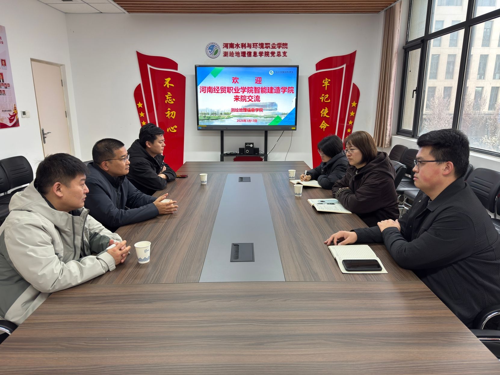 3月17日,河南经贸职业学院智能建造学院副院长成亮一行到访我校测绘地理信息学院,就无人机航测实训室建设工作开展专题调研。测绘地理信息学院院长尹冬丽及相关专业教师热情接待并陪同交流。