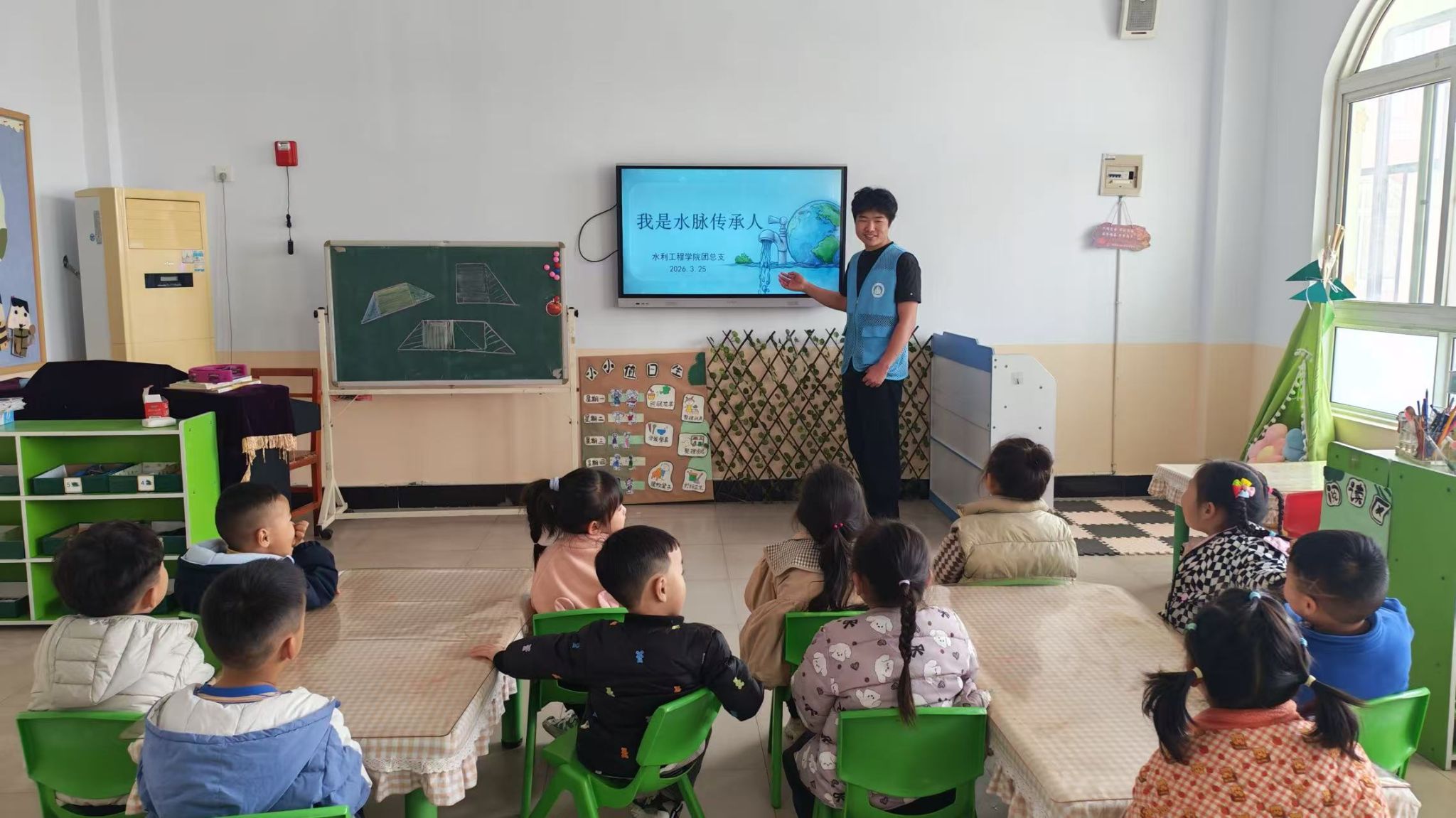 3月25日,水利工程学院赴明港幼儿园,开展“我是水脉传承人,赓续千年治水魂”主题志愿服务活动,以趣味科普形式向幼儿普及节水知识,厚植节水护水意识,传承弘扬水文化。