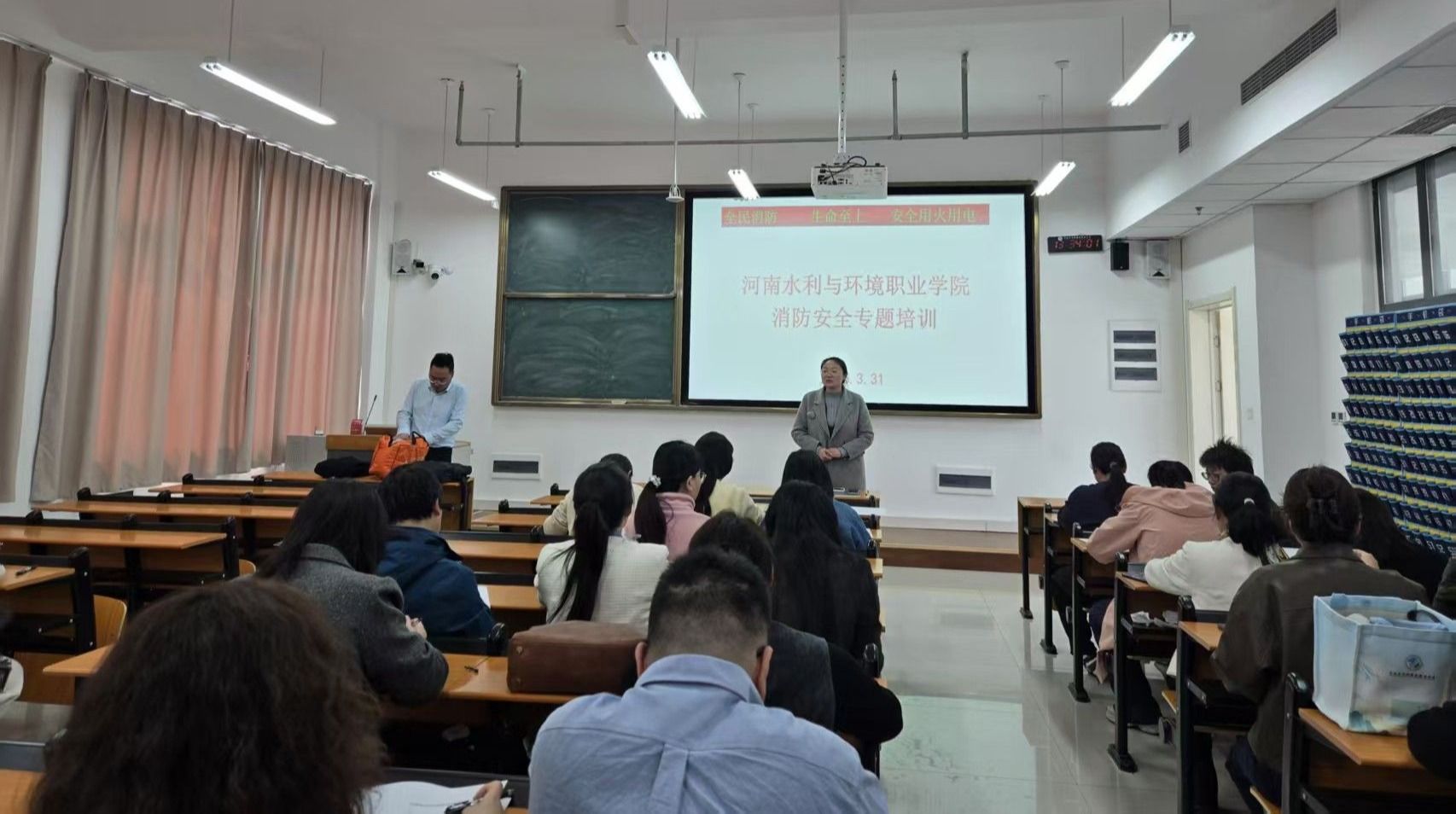 为深入贯彻落实校园安全稳定工作要求,进一步强化教职工消防安全责任意识,3月31日,环境与生态学院在笃行楼组织开展教师消防安全专题培训及实操演练,学院全体教职工参加。