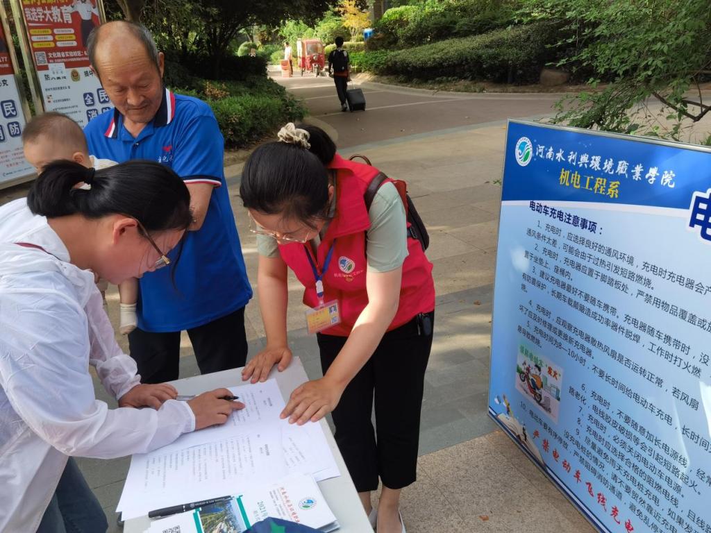 5月28日,机电工程系党总支组织学生志愿者到院校社区圣菲城4期开展“不忘初心,用专业服务社会,奉献社会”社区用电安全宣传志愿服务活动。