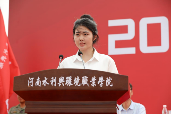 2024级水利工程系水建1班李俊杰、机电工程系机械工程师3班邢远欣作为新生代表发言,向学校、领导、老师表达了感谢,表示期待在水环学院接受知识的洗礼,学习如何做人做事做学问,志存高远,脚踏实地,努力成长为社会栋梁。