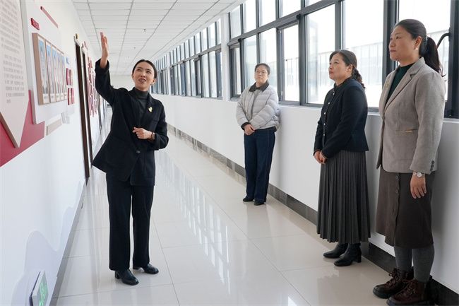 在学院院长郝思惠的引导下,李志萍一行首先实地察看了学院文化墙与办公区域。从“党建引领强根基”到“师资建设提素养”,从“思政课程焕生机”到“科研成果破难题”,六大板块图文展板系统呈现了马院在理论教学、实践育人、社会服务等领域的扎实成效。参观中,李志萍不时驻足问询,围绕思政课改革创新、青年教师成长路径、“大思政课”建设等关键问题与参会教师深入交流,对学院坚守“马院姓马、在马言马”的鲜明导向,深耕马克思主义理论教育教学的成效给予充分肯定。