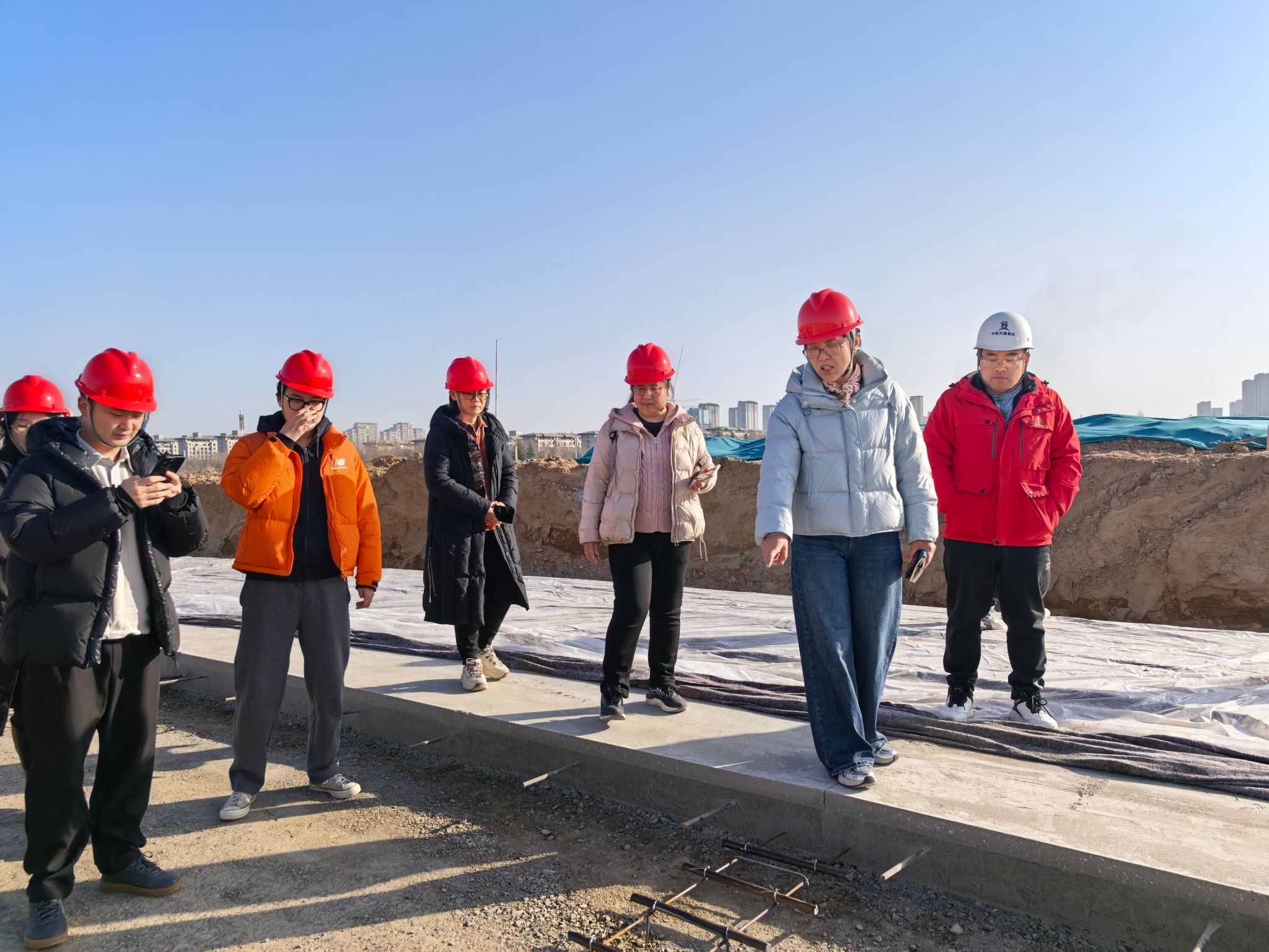 会后,全体教师深入施工现场,实地观摩了道路主体结构施工、基坑支护体系、临时设施布置及安全文明施工管理等关键环节。现场技术人员结合工程实例,就深基坑支护技术、高支模施工方案以及绿色建造措施等内容进行了细致讲解。教师围绕施工组织设计、质量控制要点及工程监理实务等话题与一线工程师展开了深入交流。