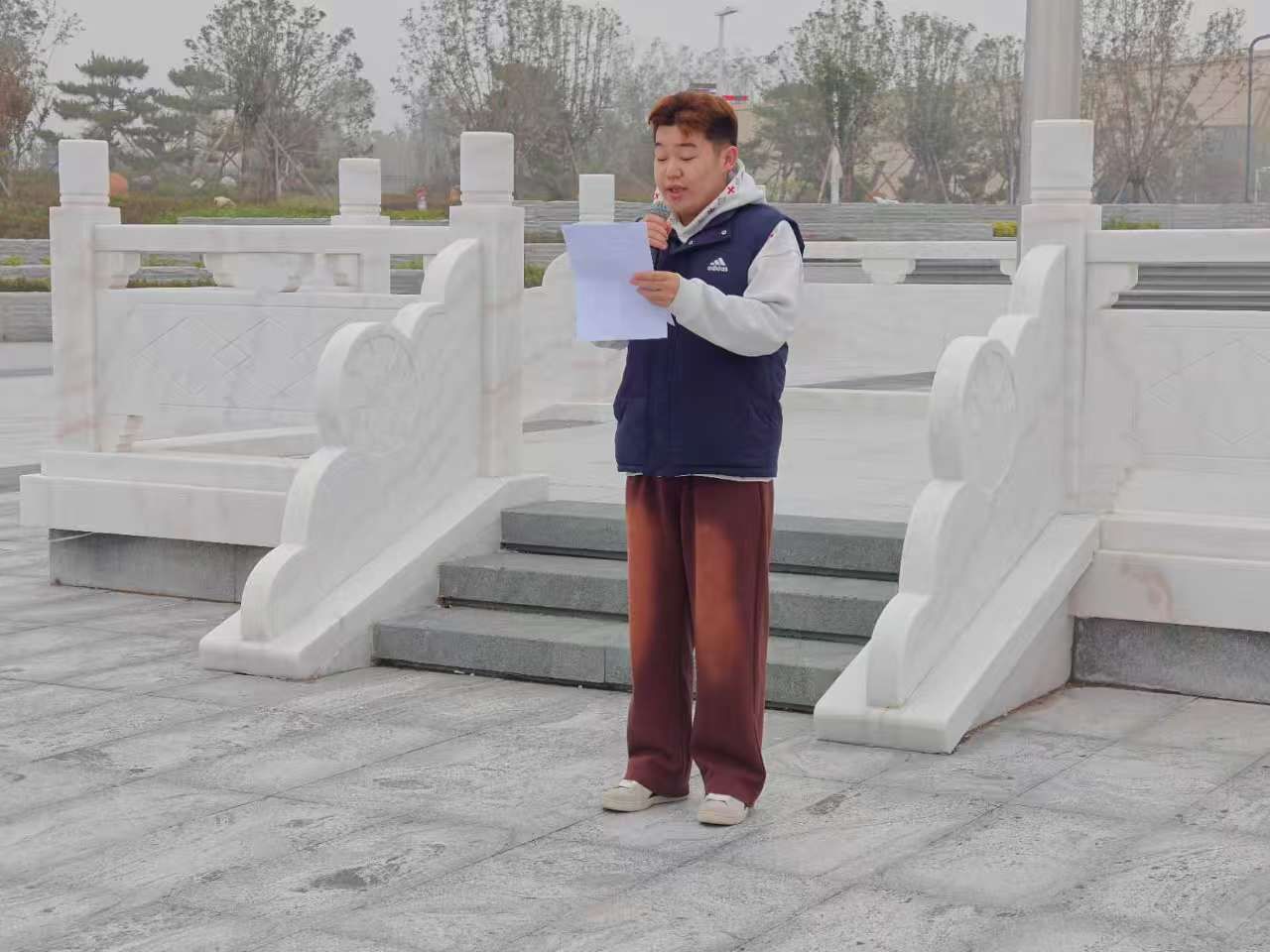 学生代表24智交2班武鹏飞同学在国旗下发言。他结合交通工程专业特色,阐述了将爱国情怀融入专业学习、以专业本领助力交通强国建设的使命担当,号召同学们以行业先辈为榜样,为民族复兴贡献交通力量。