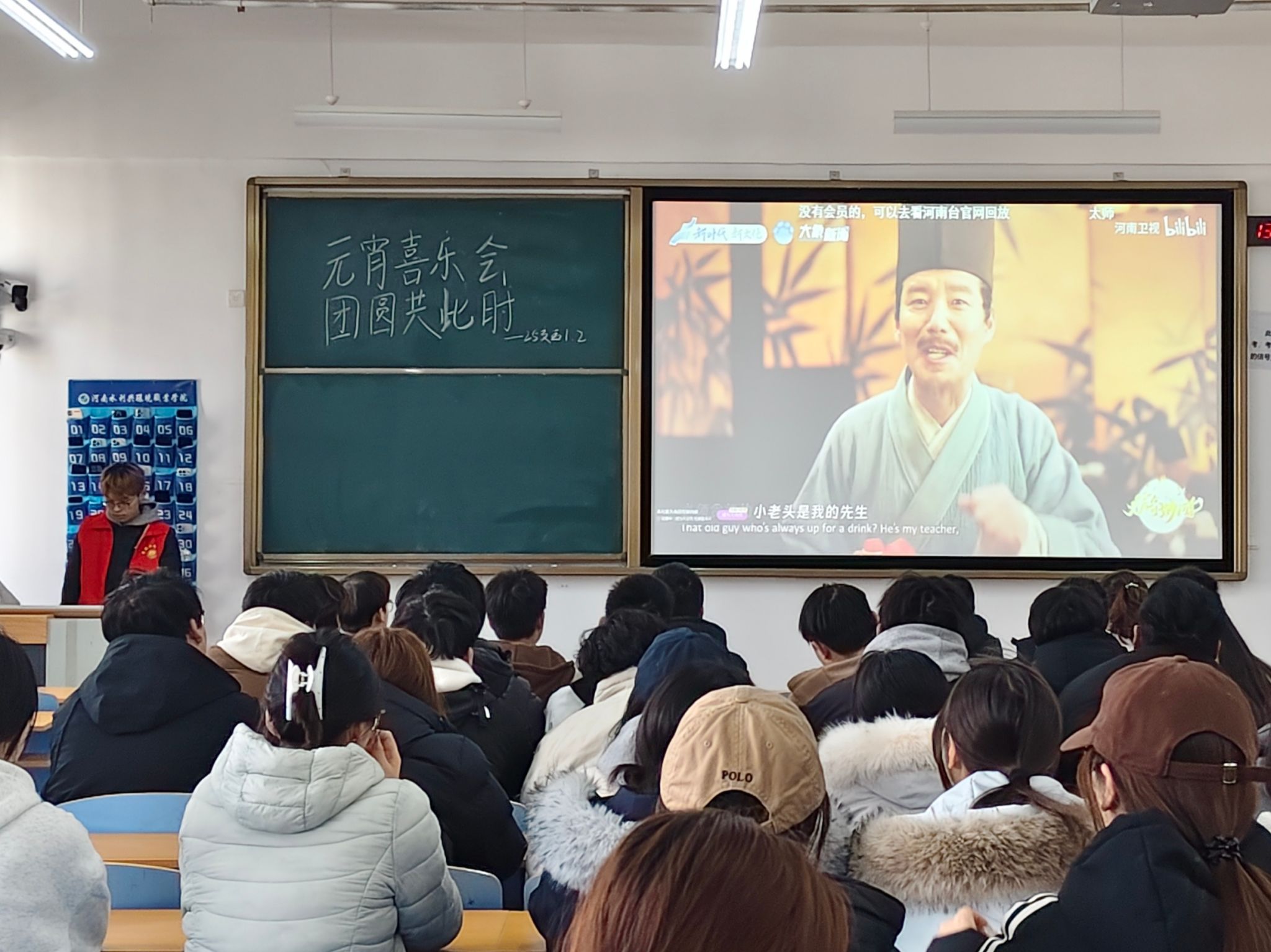 志愿者们首先组织同学们集中观看往年河南卫视元宵晚会的精彩片段,丰富多彩的节目轮番呈现,既有传统韵味,又融入时代气息,让在场学生深深沉浸其中。观影过程中,同学们不时交流讨论,分享自己记忆中与元宵节相关的温暖故事,现场欢声笑语不断,气氛热烈融洽。观影结束后,志愿者代表结合晚会内容,与同学们展开互动交流,分享元宵节的历史渊源和传统习俗,从吃元宵、赏花灯到猜灯谜、舞龙舞狮,生动讲述了这一传统节日所蕴含的文化内涵。
