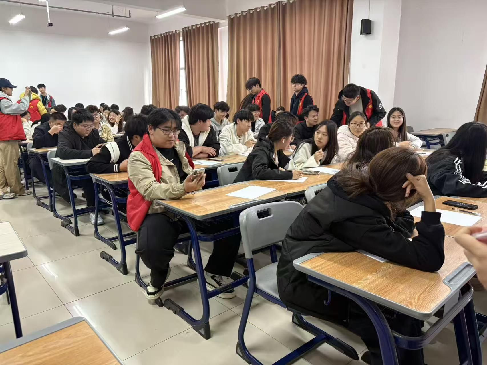 活动现场全程遵循无语言交流规则,首位同学依题作画,后续成员依次猜词、谐音接龙并绘制新词,创意为先、趣味至上。最后一位同学完成后,全组讲解创作与接龙思路,言之有理即算成功。同学们充分发挥想象力,用心作画、默契配合,从猜词接龙到思路解读,各小组各展所长,现场欢声笑语不断,尽显青春活力。活动设置学分奖励机制,经多轮比拼晋级,最终评选出一、二、三等奖,充分调动了同学们的参与热情。